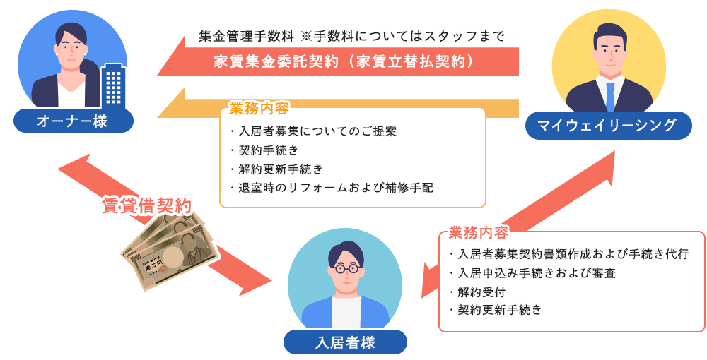 - 弊社がオーナー様に代わり、入居者様の窓口となります。